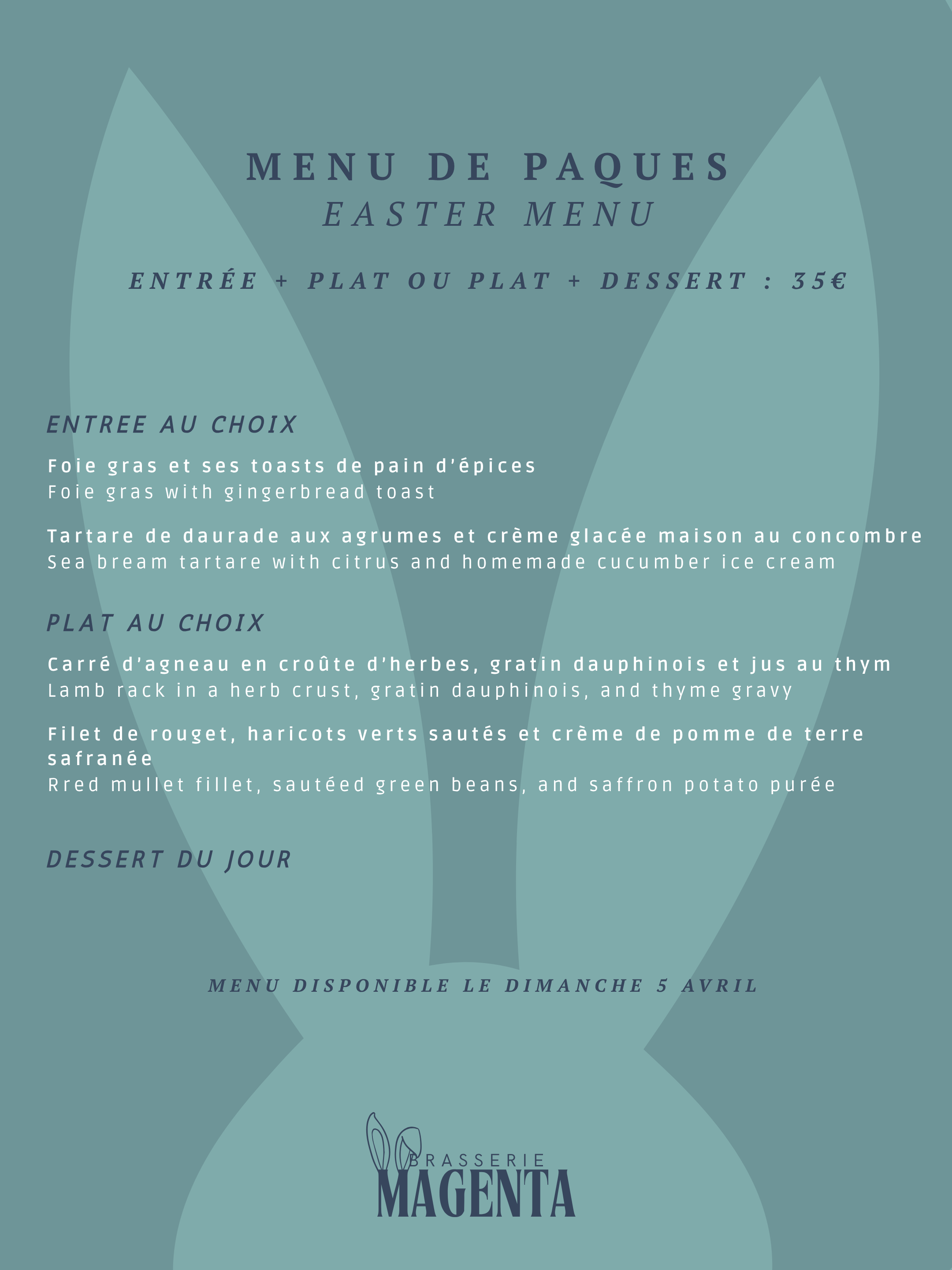 Au Magenta pour Paques, on vous propose un menu spécial, gourmand et de saison 💛